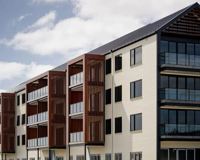 Featuring extensively on both front and back elevations of the Country Club Building, the same MetWood finish is also included on the individual housing units in the surrounding retirement village.