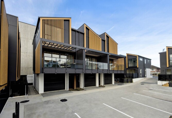 Aurae battens in a Metwood ® Light Manuka finish were applied to this development in Mission Bay. The battens provide privacy to the apartments, and the Metwood ® finish gives a stylish and softer overall timber look, which is virtually maintenance free, requiring only a simple washdown.