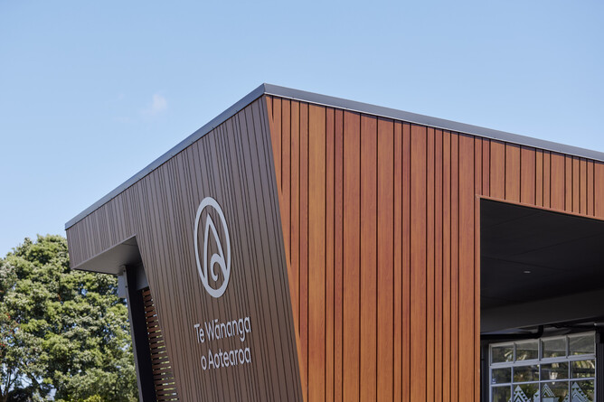 APG Architects transformed a deteriorating former DB Tavern and church into a vibrant tertiary education campus for Te Wānanga o Aotearoa. Metwood Dark Cedar was applied to random-width Vulcan aluminium cladding boards over the existing drive-through, delivering a rich timber aesthetic with none of the upkeep.